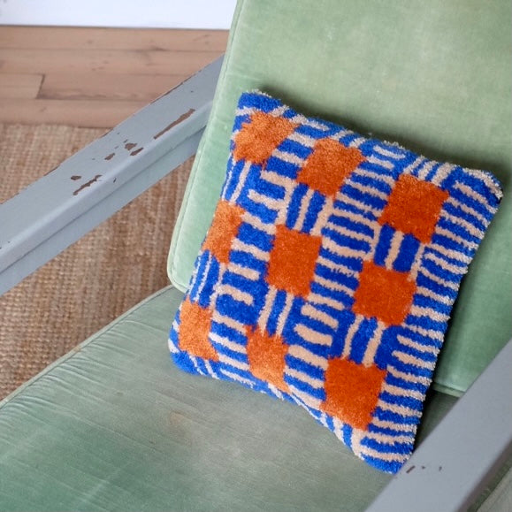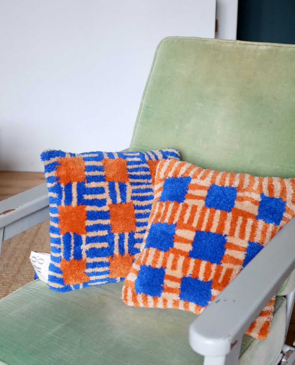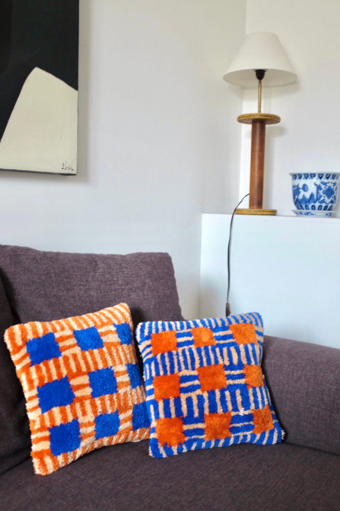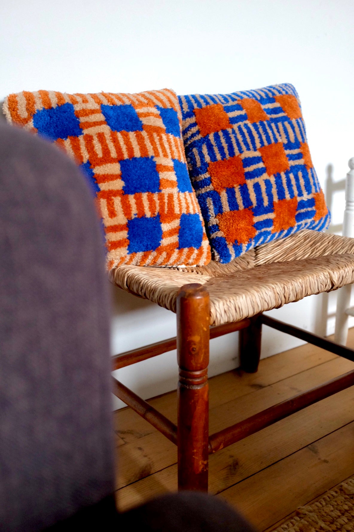Coussin BRIQUE, pièce unique tuftée à la main à côté de Saint Malo