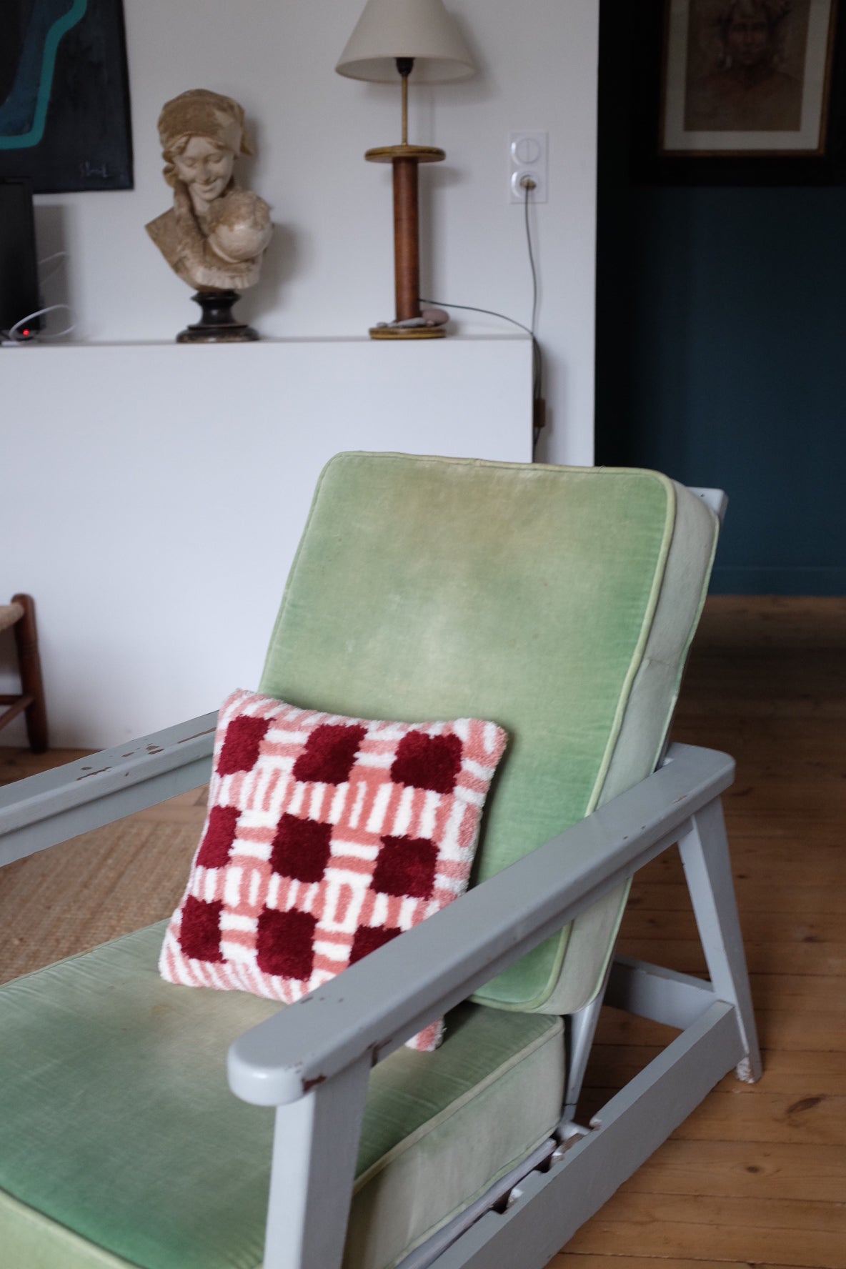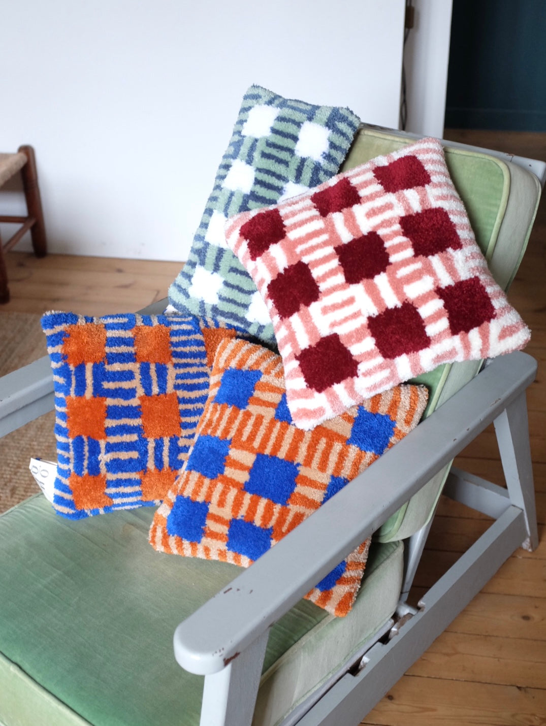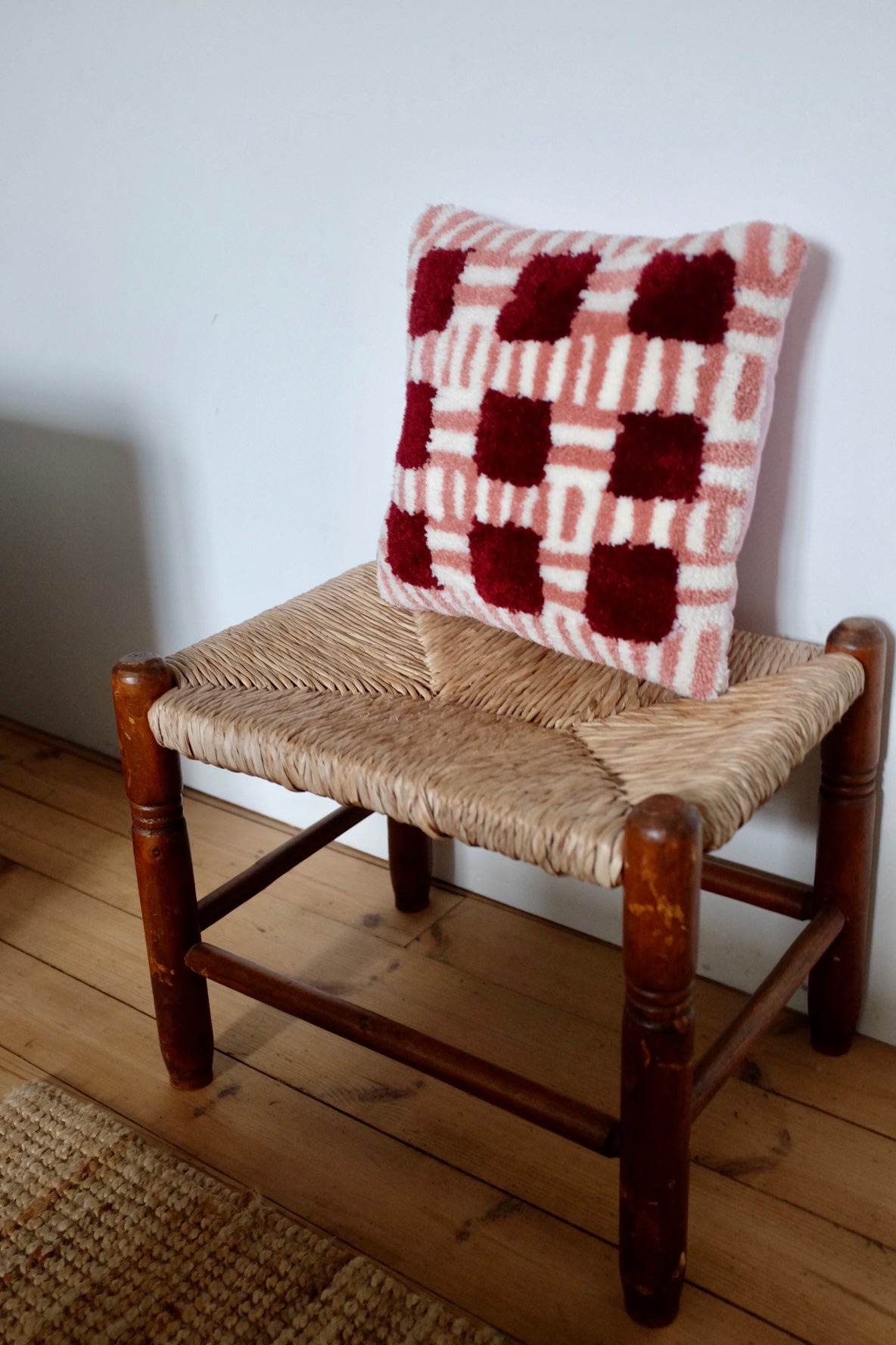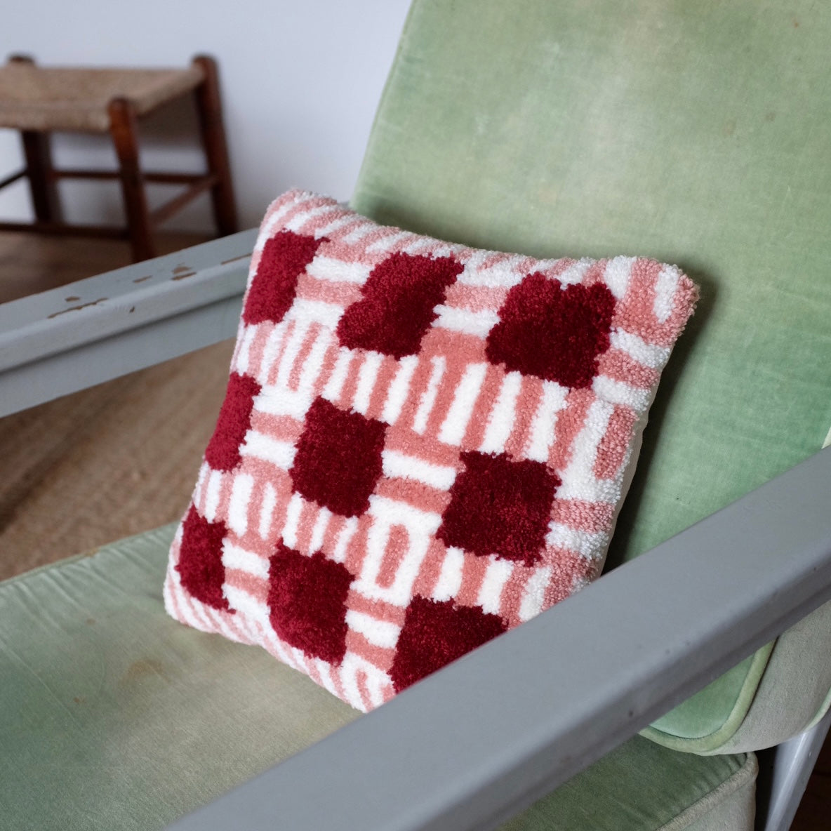 Coussin BRIQUE, pièce unique tuftée à la main à côté de Saint Malo