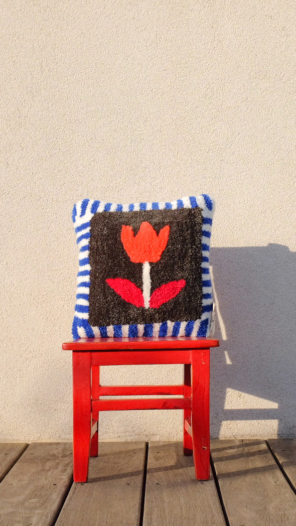 Coussin BRIQUE, pièce unique tuftée à la main à côté de Saint Malo
