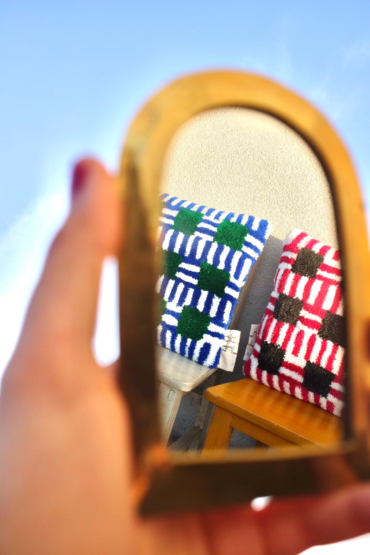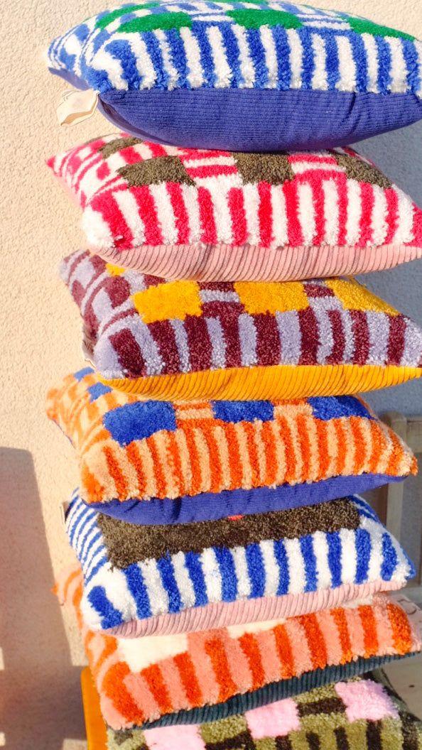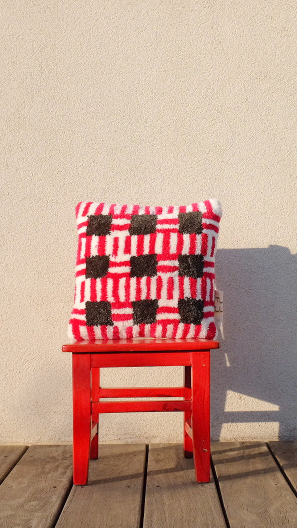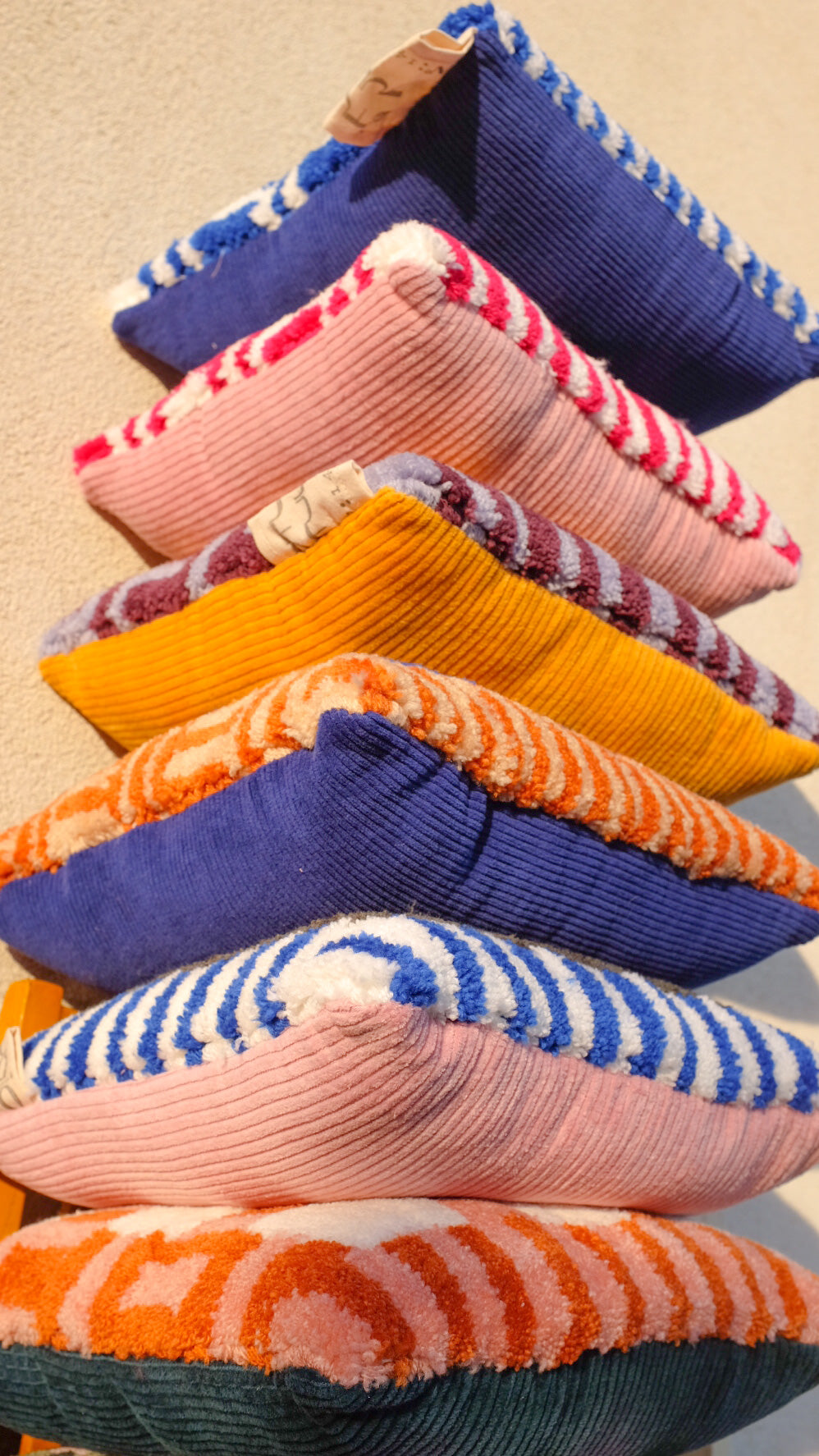 Coussin BRIQUE, pièce unique tuftée à la main à côté de Saint Malo