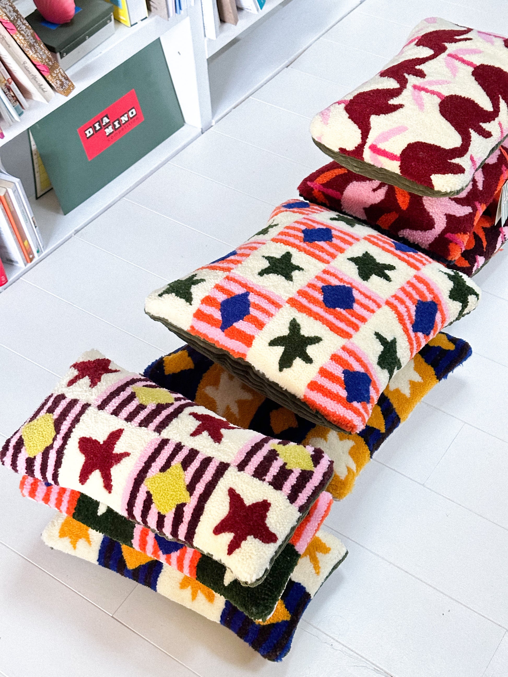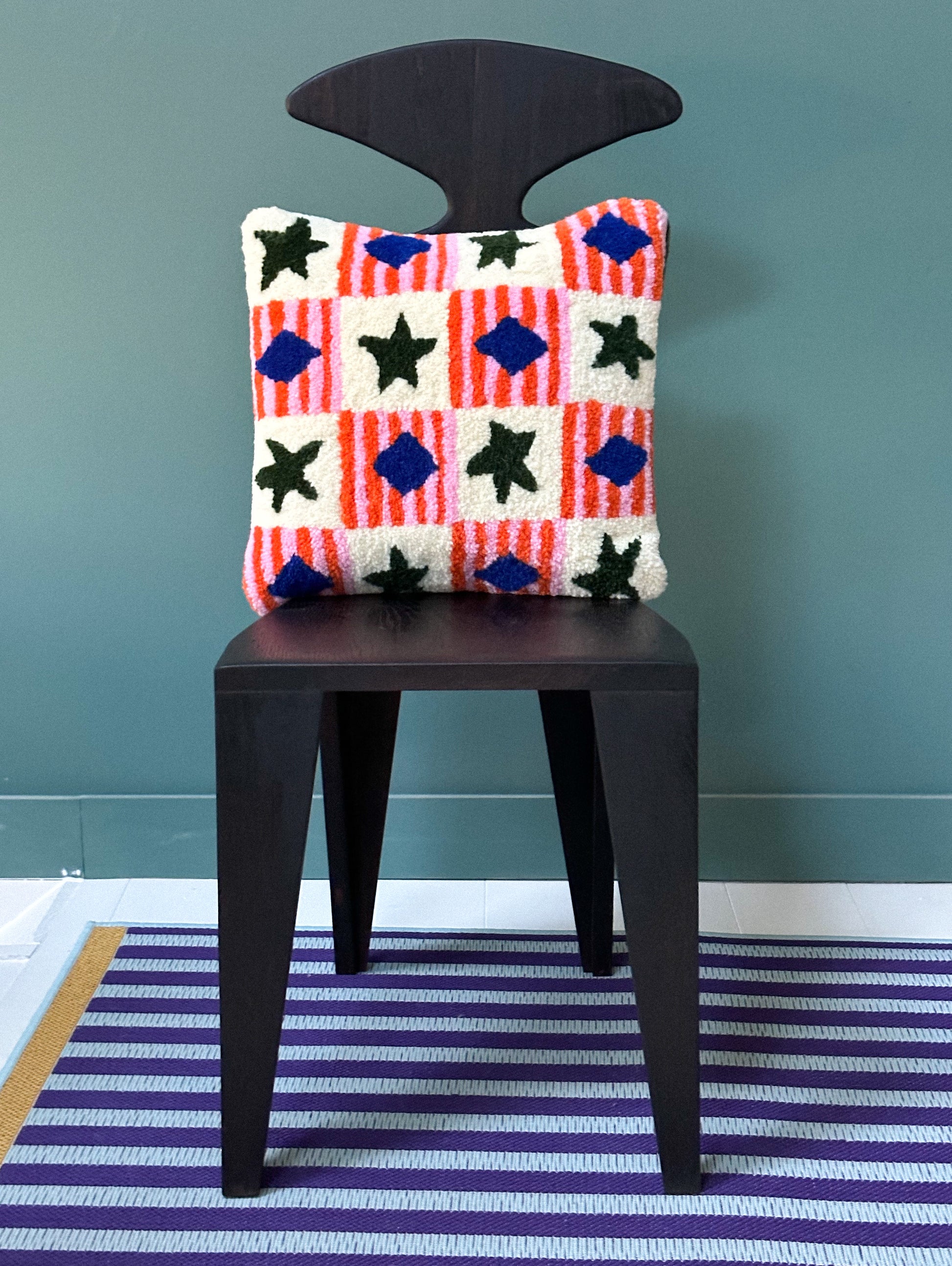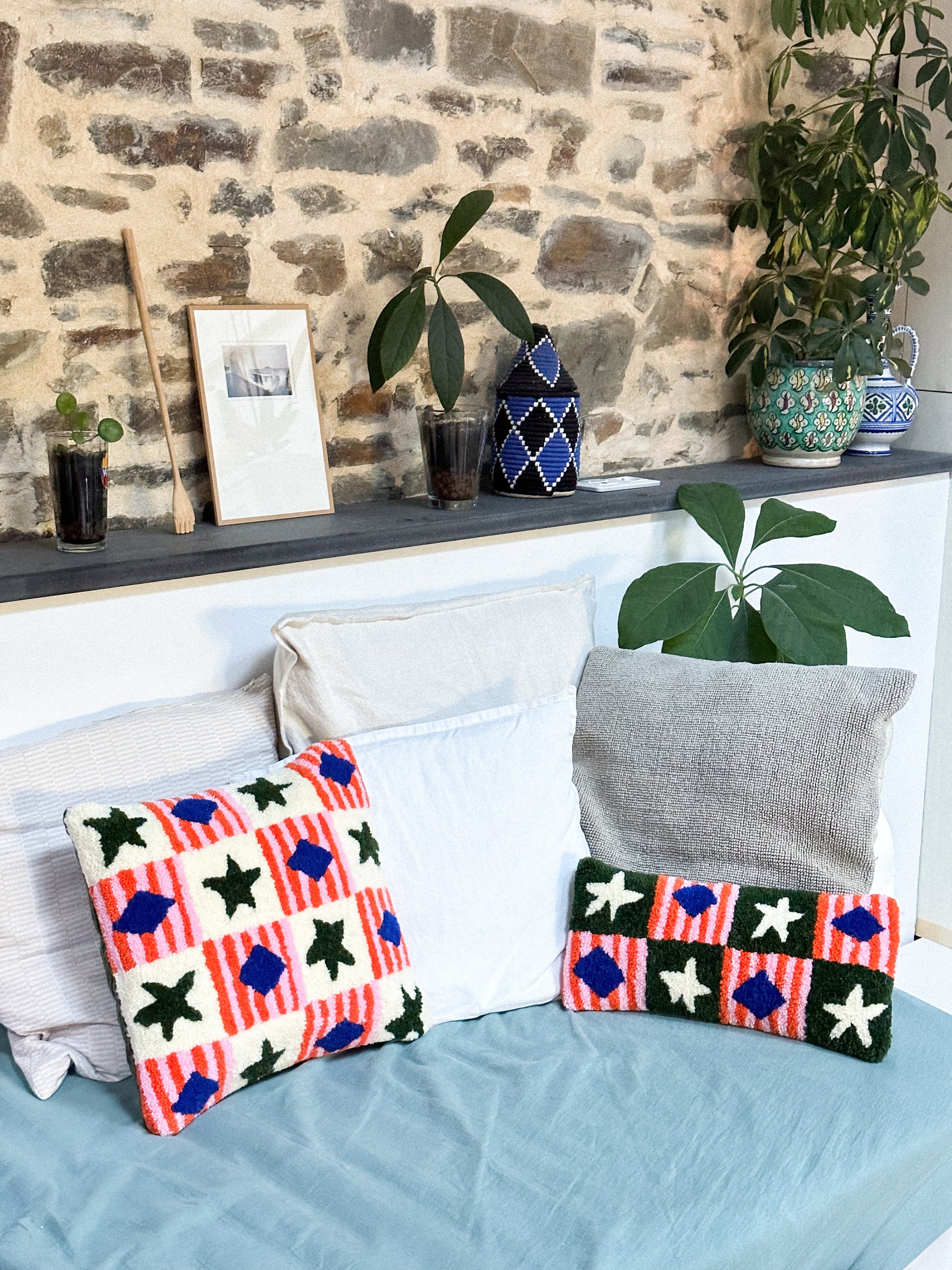 Coussin STELLA ORANGE maxi, pièce unique tuftée à la main à côté de Saint Malo