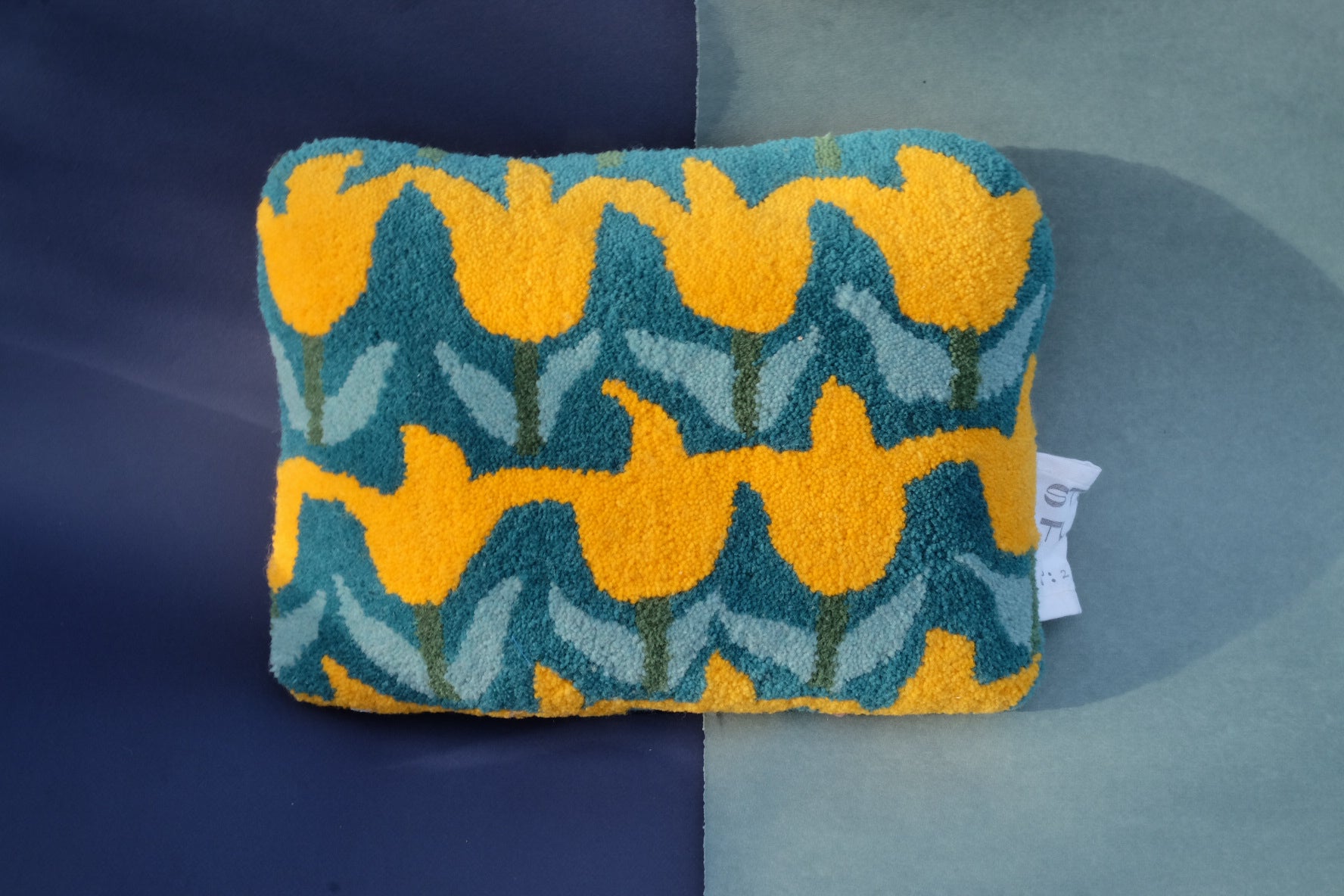 Coussin TULIPA GREEN, pièce unique tuftée à la main à côté de Saint Malo