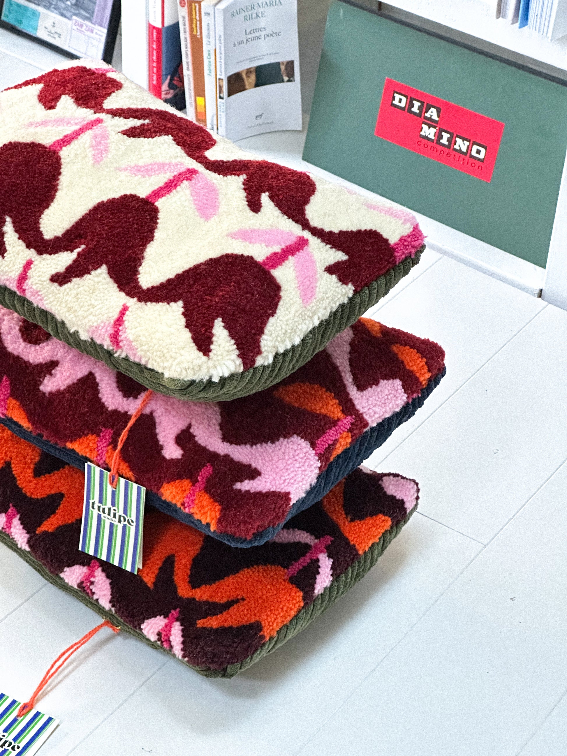 - Composition : 100% laine Fonty (filature située dans la Creuse), velours, garnissage 100% laine.